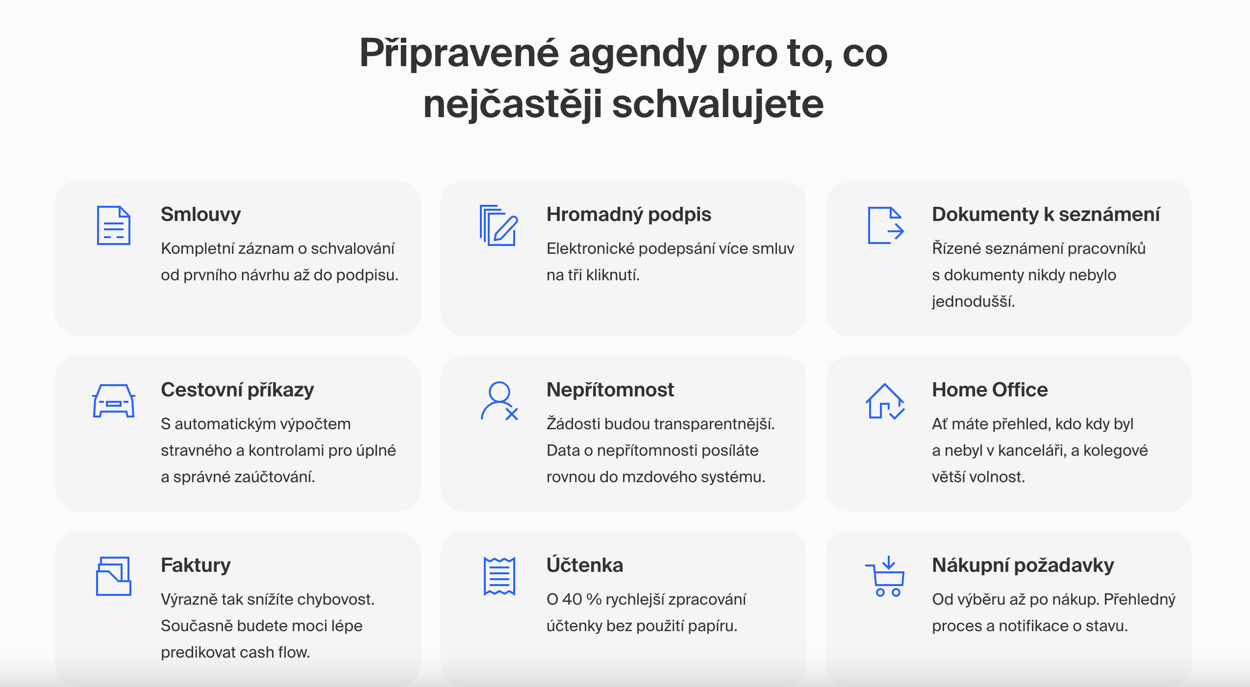 Interní procesy zvládnete jedním klikem. Dovolená, faktura, home office...
