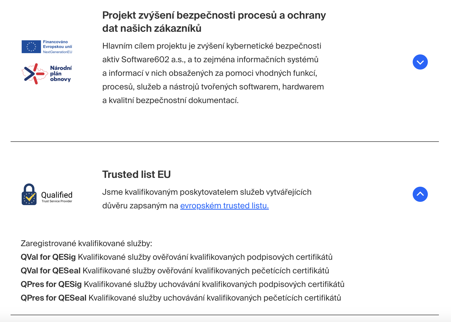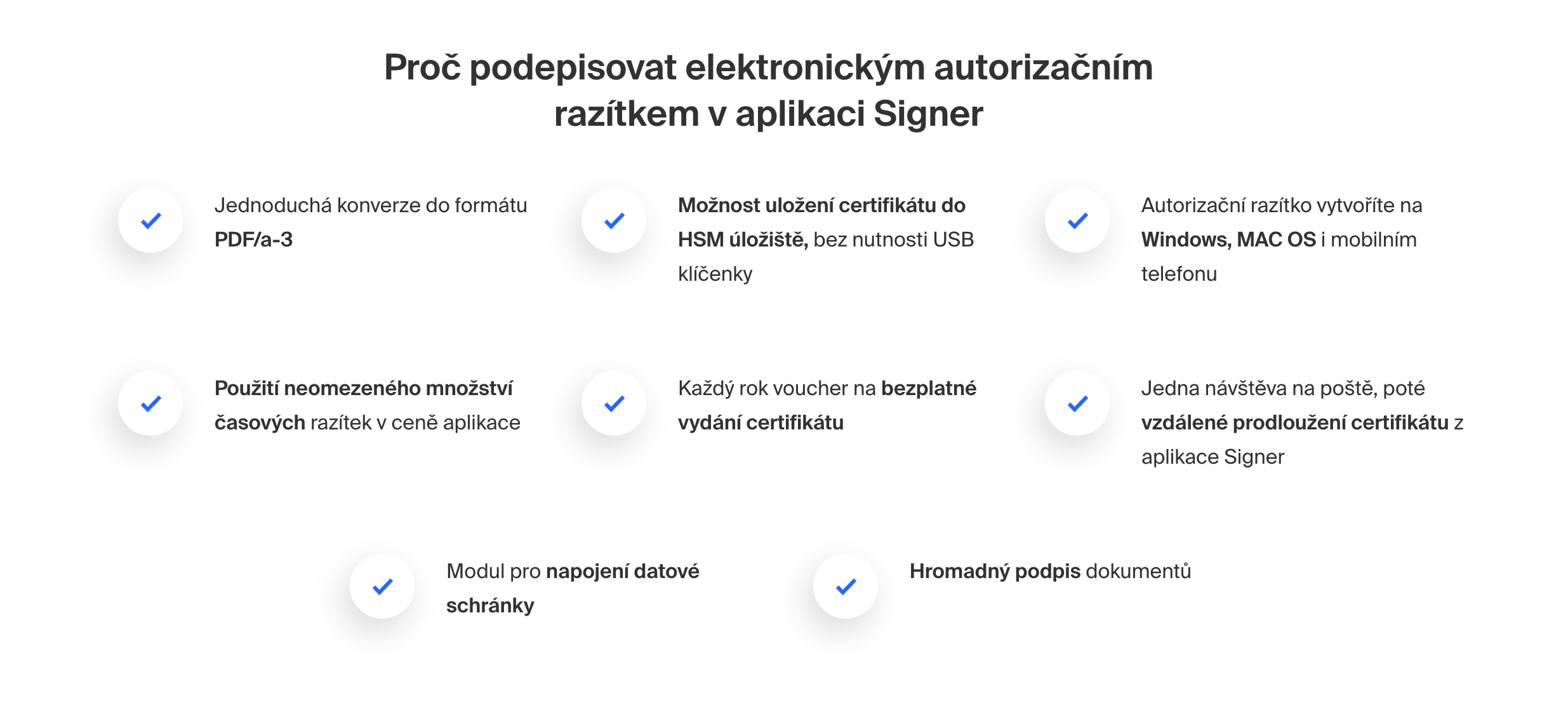 Kvalifikované podpisy pro zaměstnance oprávněné jednat a podepisovat za organizaci.