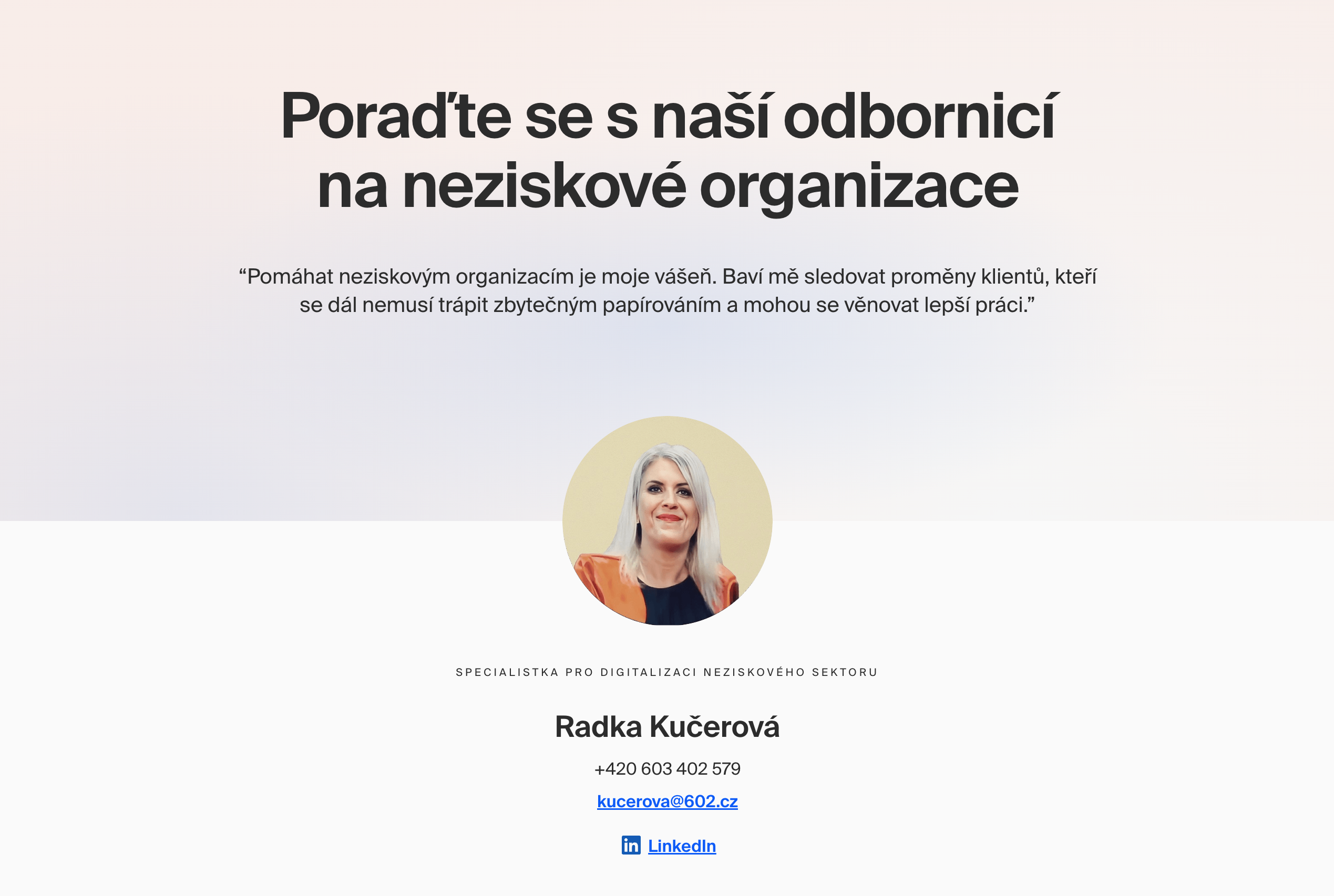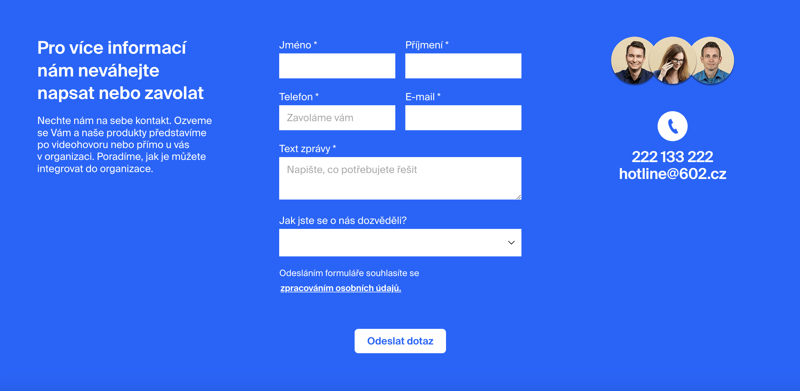 Nechte nám na sebe kontakt. Ozveme se Vám a naše produkty představíme po videohovoru nebo přímo u vás v organizaci. Poradíme, jak je můžete integrovat do organizace.